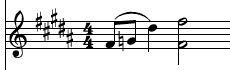 At this stage, the chord progression is straightforward: B major to E minor. But the dissonance from the percussion triangle is actually pointing to an added G on the B. I transcribe it thus: